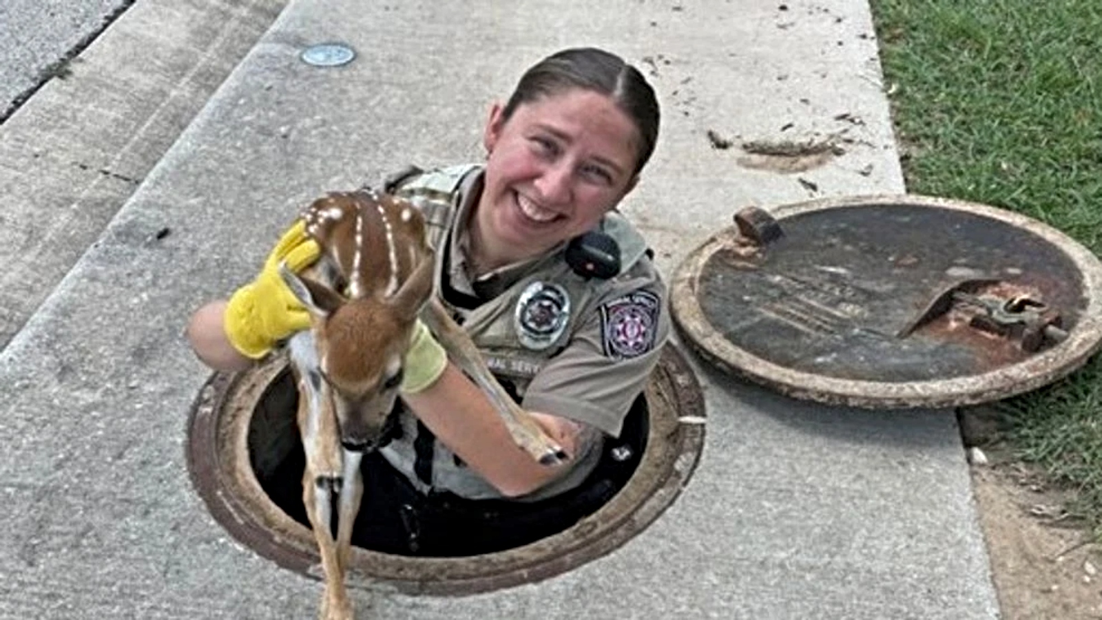 Texas Leander | Rescatan a cervatillo caído en alcantarilla Un cervatillo fue rescatado por Leander Animal Services tras caer en una alcantarilla cuando intentaba seguir a su madre por una vía en Leander. MayrinMJune 6, 2025